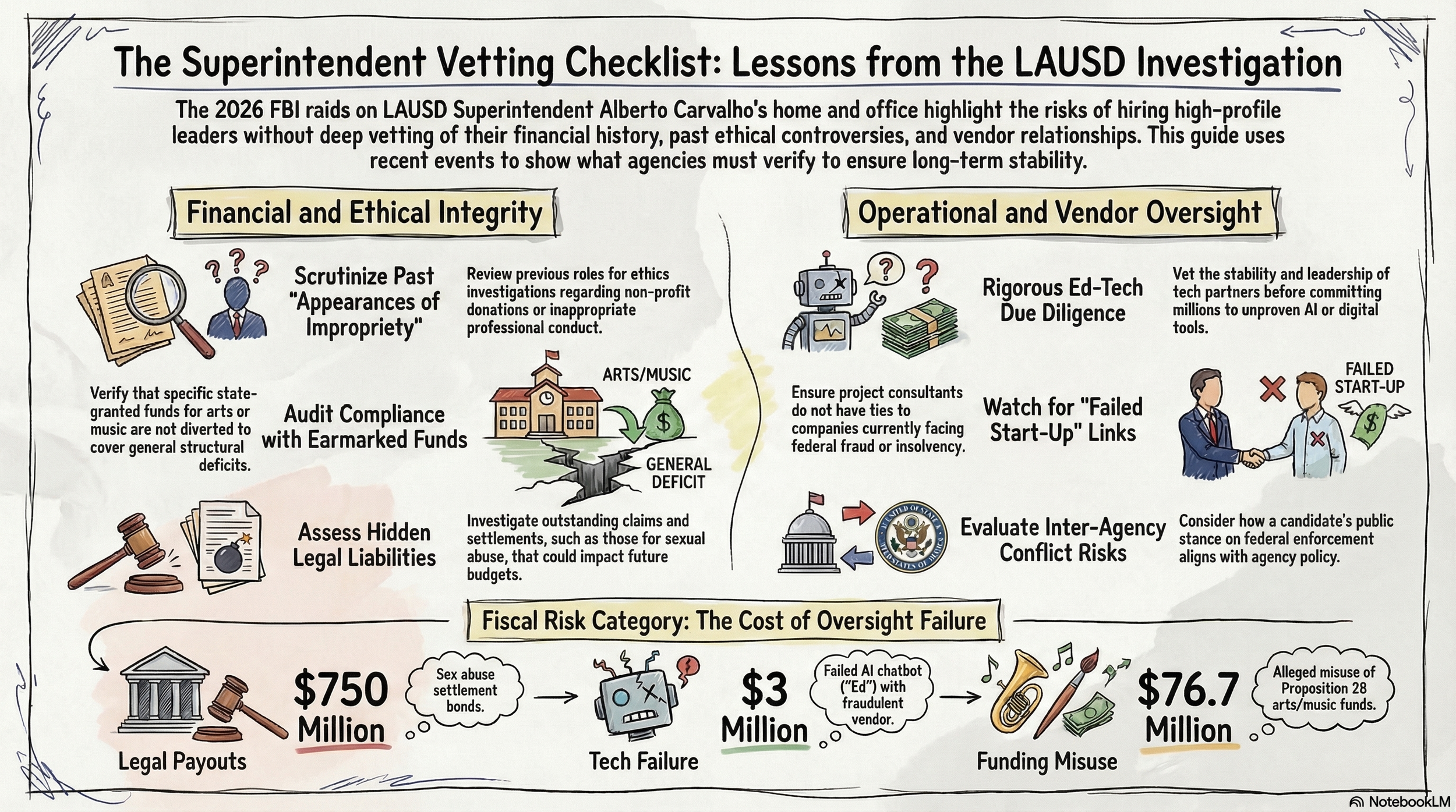 This episode analyzes the decision by Alberto Carvalho and the Los Angeles Unified School District to place its superintendent on paid leave following federal searches tied to a failed technology contract.